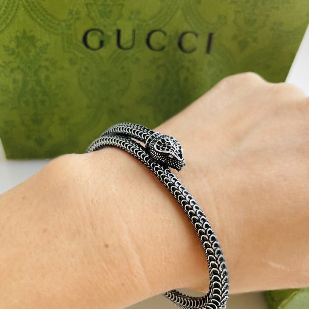 Indulge in opulence with Gucci’s exquisite Garden Series. Crafted from sterling silver 925, this bracelet exudes refined elegance and sophistication. The snake shape design adds a touch of retro charm, perfect for making a statement. Suitable for formal and casual occasions, this versatile piece can be paired with other luxury accessories to elevate any outfit. The sterling silver 925 material ensures durability and a long-lasting shine, making it a valuable addition to any jewelry collection.